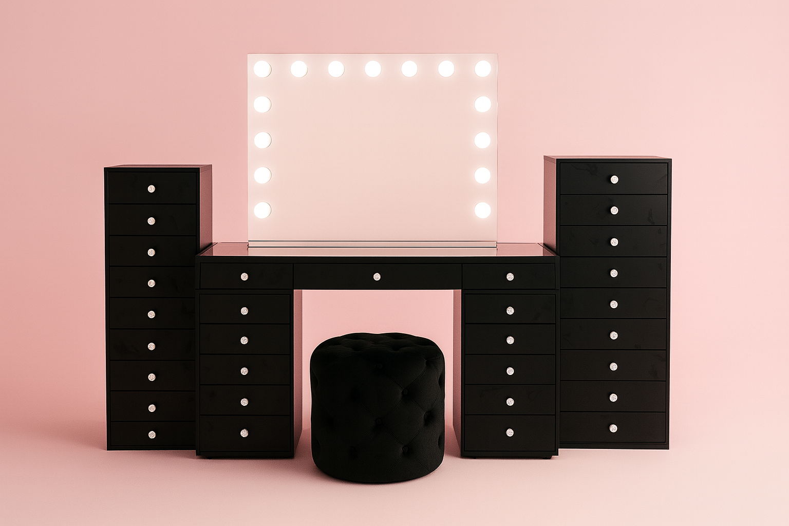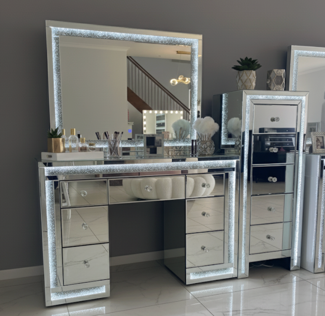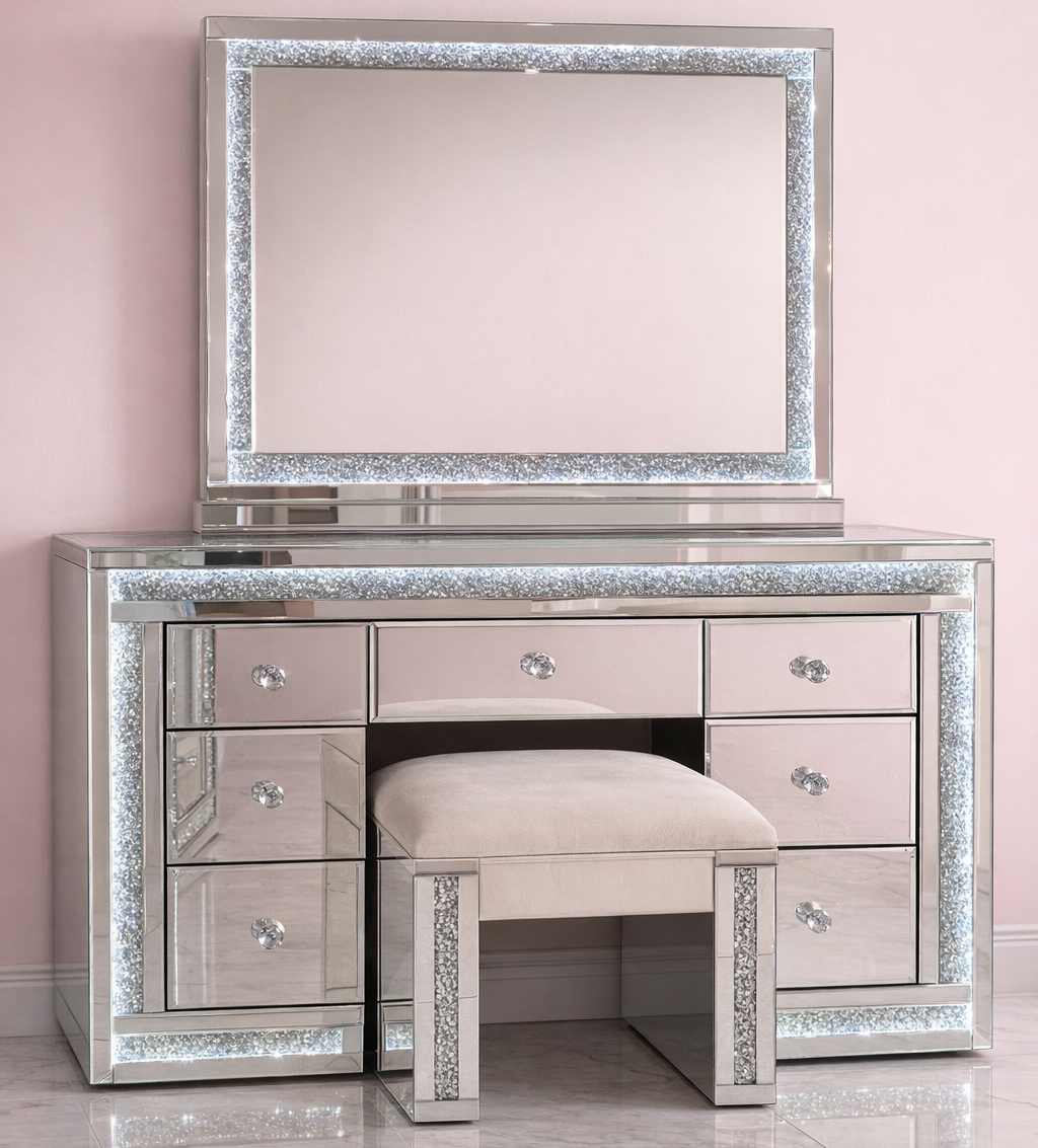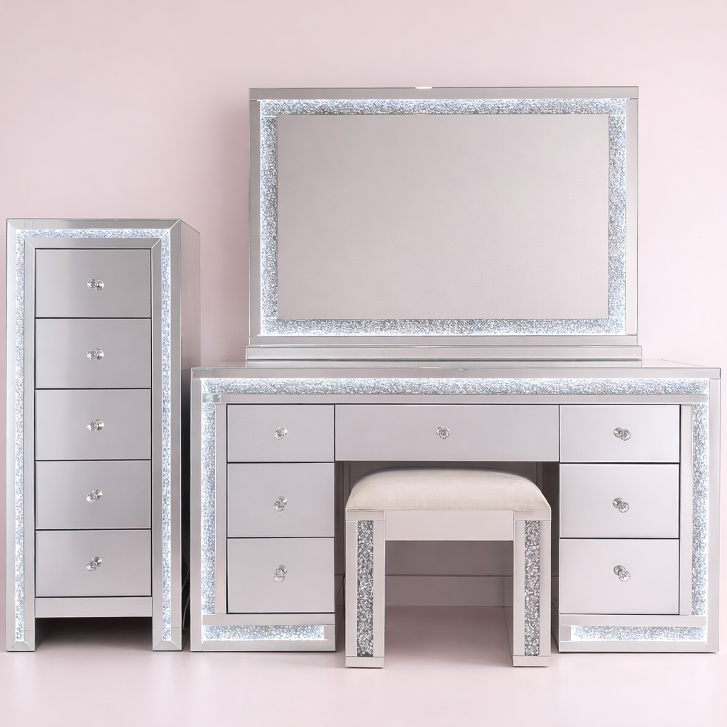 Whether you are just planning your glam room or want to change your current setup, Vanity Vault gets you covered. We provide a complete Vanity Vault Essentials Package that comprises a tasteful vanity table, a stylish mirror, and a beautiful ottoman. Get more makeup vanity tables here and give your home the luxurious touch it deserves. From the Classic Vanity Desk to the Luna Luxe Mirror, our premium offerings are designed to assist you in creating an ideal beauty space. Design your ideal room today and indulge in luxury daily!