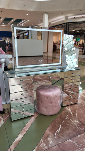 1x The Crystal Frost Mirror (110cm) – A breathtaking LED mirror with a dazzling crystal frame, giving you the perfect lighting for flawless makeup and styling.