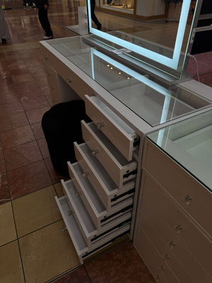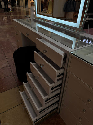 With premium finishes, crystal-style knobs, smooth-glide drawers, and stunning top options, the Babyface Vanity delivers elegance and practicality in one. Compact yet powerful in storage, she proves that good things really do come in slightly smaller packages.
