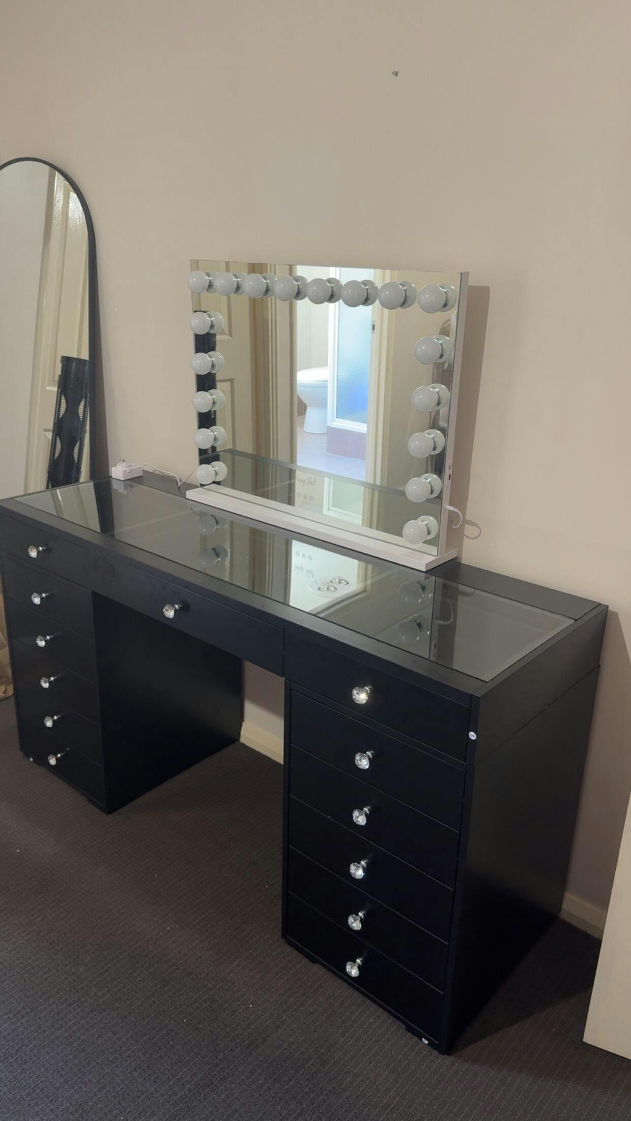 Introducing the Black Out Beauty Vanity, our latest desk addition that combines bold elegance with practical design. Finished in a refined semi-gloss, this piece makes a striking statement while offering functionality that elevates your beauty or workspace.