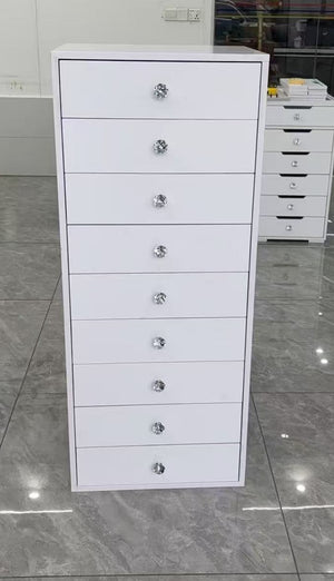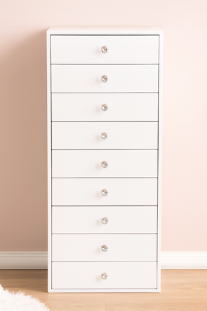 With nine spacious drawers adorned with sparkling crystal-style knobs, the Harmony 9 Tower combines style and function in one stunning piece. Its slim, space-saving design offers generous storage without taking up too much room — perfect for any beauty lover’s setup.